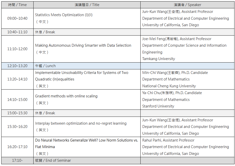 NCKU STEM Program for Higher Education Seminar on Optimization, Statistics and Machine Learning